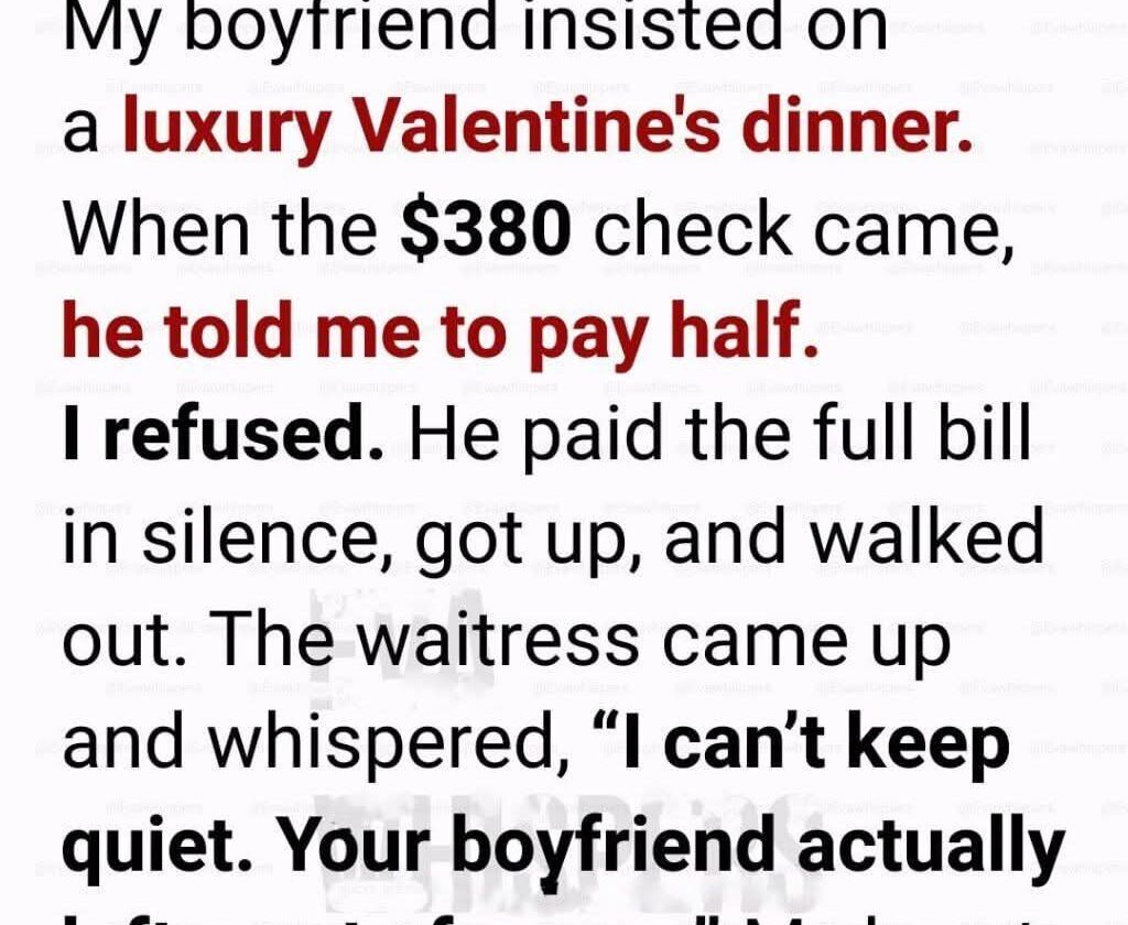 “This just feels strange to me,” she said carefully, choosing her words. “You planned this whole evening for Valentine’s Day. Why would I need to pay for half of the special date you invited me to?”