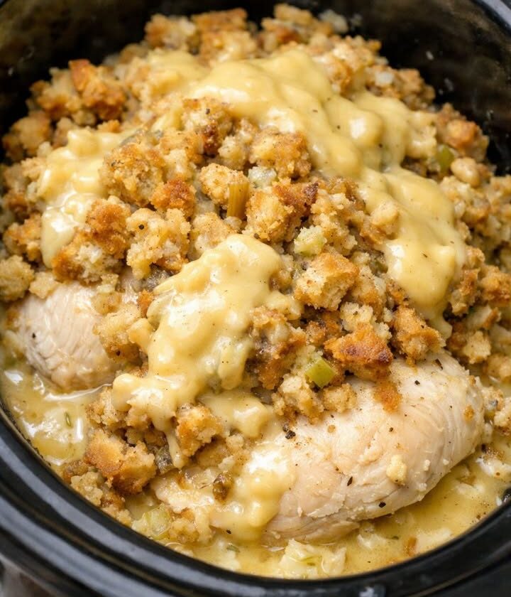 Slow Cooker 4-Ingredient Chicken and Stuffing