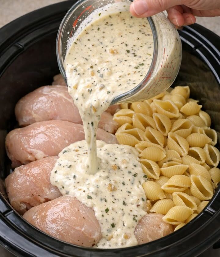 This is one of those dump-and-go slow cooker dinners that honestly feels like a little gift to your future self. You whisk together one creamy garlic-Parmesan mixture, pour it over raw chicken breasts and dry shell pasta, flip the slow cooker on, and walk away. A few hours later, you’ve got cozy, ultra-creamy shells with tender shredded chicken and big roasted garlic flavor. It’s the kind of Midwest weeknight comfort food that works just as well for a busy workday as it does for a lazy Sunday, and it really does hit a little different every time depending on the herbs you use and how much garlic you’re in the mood for.
