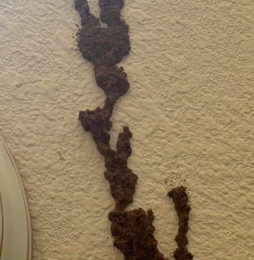 One homeowner recently shared photos online showing a strange dirt trail slowly climbing the wall above a clock. What began as a small patch expanded over just 18 days into a thick tunnel of soil. After seeing the images, many viewers quickly recognized the culprit: termite mud tubes.