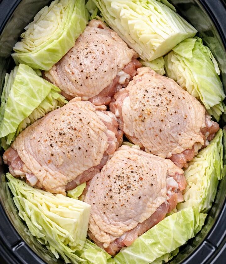 Cover the slow cooker with the lid and cook on LOW for 6 to 7 hours, or on HIGH for about 3 to 4 hours, until the chicken is very tender and cooked through (reaching 165°F in the thickest part) and the cabbage is soft and buttery at the edges but still holds together in wedges.